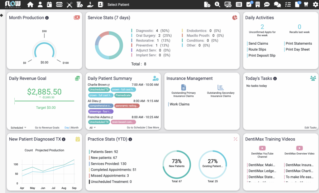 Instead of manually filling out claim forms, software auto-populates the correct CDT codes, generates statements, and submits claims electronically. DentiMax also flags missing information before submission, minimizing denials and improving collection rates.